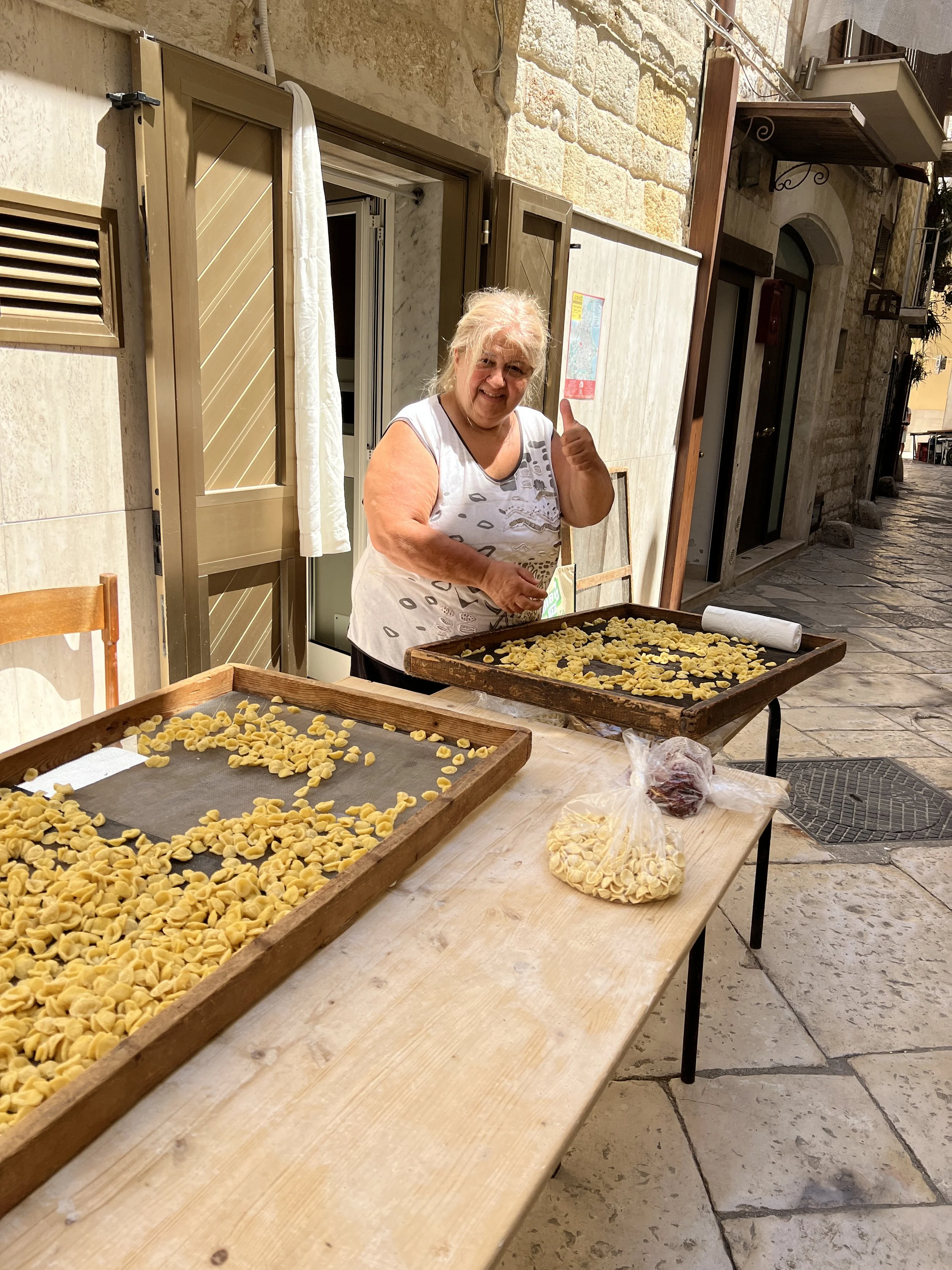 Check out the old town in Bari and visit “Strada delle Orecchiette,” where the ladies make orecchiette pasta on the street.